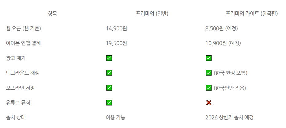 이제는 훨씬 가볍고 합리적인 선택지인 유튜브 프리미엄 라이트가 2026년 상반기 한국에 정식 출시된답니다.